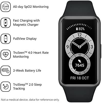 Die HUAWEI Band 6 bietet eine unglaubliche Akkulaufzeit von 14 Tagen für den typischen Gebrauch. Mit HUAWEI Dank der Schnellladetechnologie kann eine 5-minütige Aufladung bei normalem Gebrauch 2 Tage dauern.